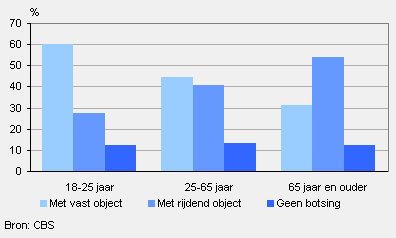 In de afgelopen vijf jaar was bijna drie kwart van de dodelijke ongevallen van jonge autobestuurders een eenzijdig ongeval. Hierbij overleed 83 procent na een botsing tegen bijvoorbeeld een boom, vangrail of paal. De autobestuurders van 25 jaar en ouder overlijden vaker na een botsing met een ander voertuig.