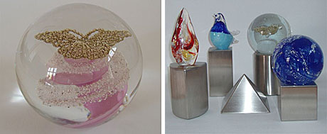 plaatje: bulletDEVRIND Gedenkartikelen verzorgt voor u graag een persoonlijk aandenken. Denkt u hierbij o.a. aan een fraaie afbeelding gelaserd in kristal, sculpturen en glasobjecten waarin crematie-as wordt verwerkt, assieraden, urnen, gedenktekens en gedenkartikelen speciaal voor de homo- en lesbogemeenschap ontworpen.