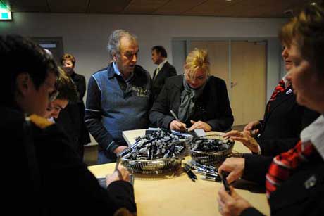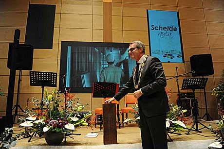 de heer drs. Polman, de naam van de nieuwe aula onthult: De Scheldeaula.
