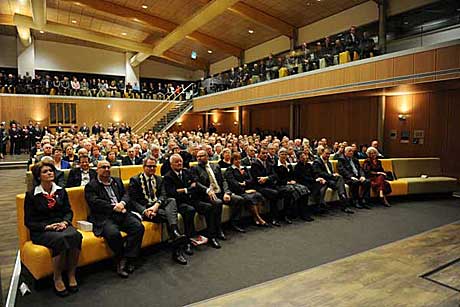 Naast de geheel nieuwe aula, waarin aan ongeveer 350 personen een zitplaats kan worden geboden, is tevens een grotere ontvangsthal gecreëerd.