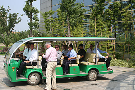 De groep werd rondgeleid met elektrische wagen