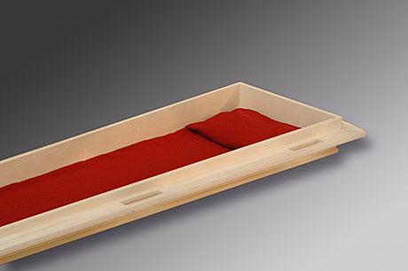 Bij alle kistmodellen lopen de handgrepen rondom. Daardoor ontstaat een cirkel van mensen die de kist dragen.