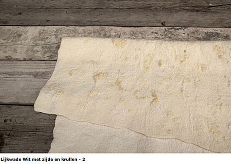 lijkwaden maak ik van diverse wolsoorten in hun natuurlijke kleurschakeringen en structuren. Verder gebruik ik natuurlijke vezels zoals zijde, vlas en linnen. Ik heb verschillende lijkwaden op voorraad maar ik kan ook in overleg een persoonlijk ontwerp maken en deze uitvoeren."