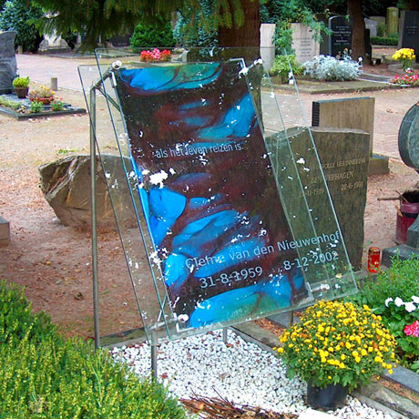 Een grafmonument van glas biedt u de mogelijkheid een persoonlijk gedenkteken te ontwerpen. De elementen, woorden, kleuren of beelden die u kiest verwerken wij in glas. Om uiteindelijke een herinneringen en een plek te creëren om troost te vinden en te eren. De mogelijkheden van een glasmonument zijn veelzijdig. GBB biedt u voorbeelden en inspiratie, zodat u een houvast heeft bij uw keuze.