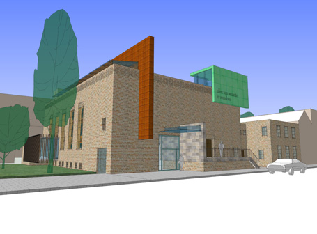 Overzichtsimpressie van het aangepaste gebouw vanaf de straat. Naast het interieur heb ik ook de buitenzijde van het gebouw onder handen genomen. Het exterieur geeft na de ingreep meer prijs over de indeling en ruimtelijke opbouw die je kunt verwachten als je binnentreedt.